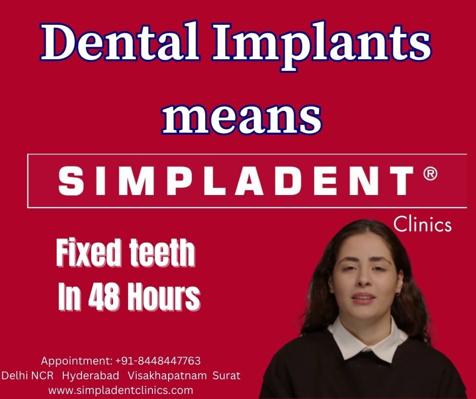 [Delhi NCR-Hyderabad-Visakhapatnam-Surat] – Simpladent Clinics is leader in dental implantology pioneering in Immediate Loading Dental Implants, offering patients the opportunity to regain their smiles and functionality in just 48 hours.